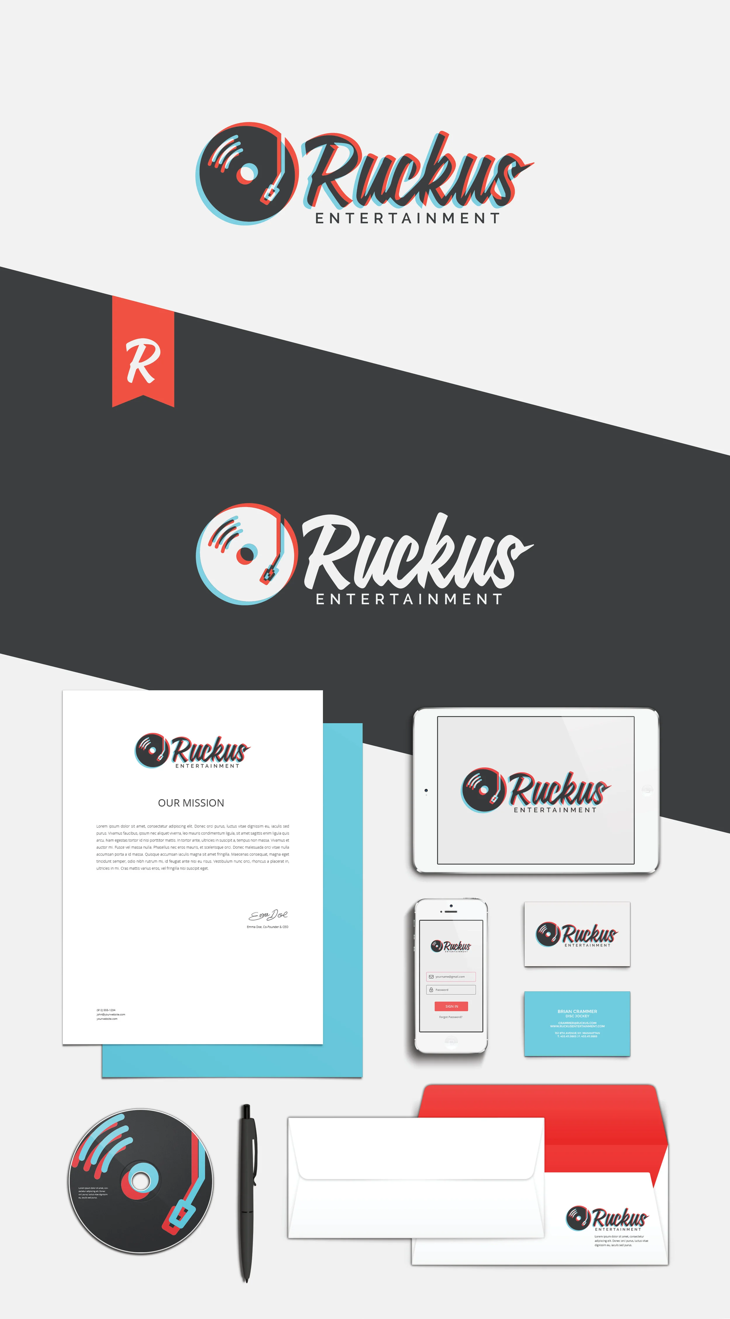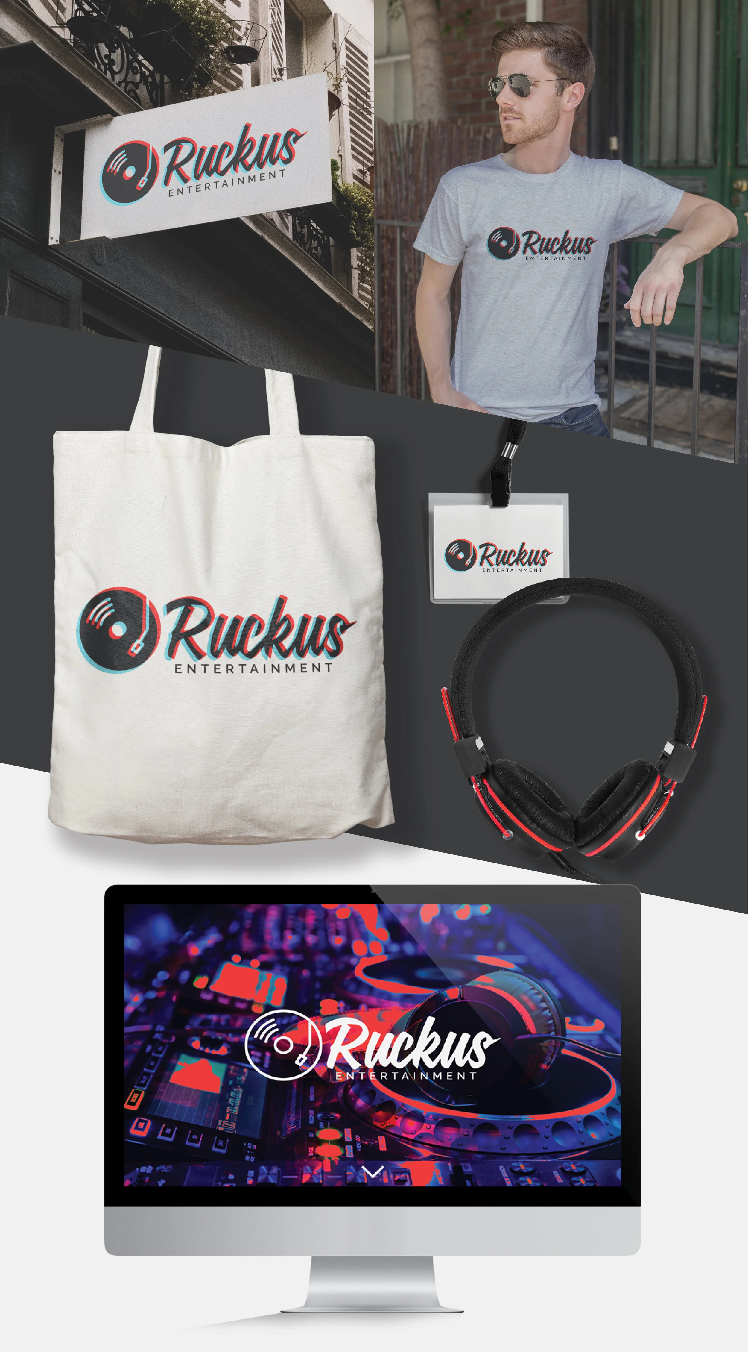 In the below branding concept, I chose a vintage 3D style to play off of the word "Ruckus," and to mimic the high energy of lights and sound in a DJ set.